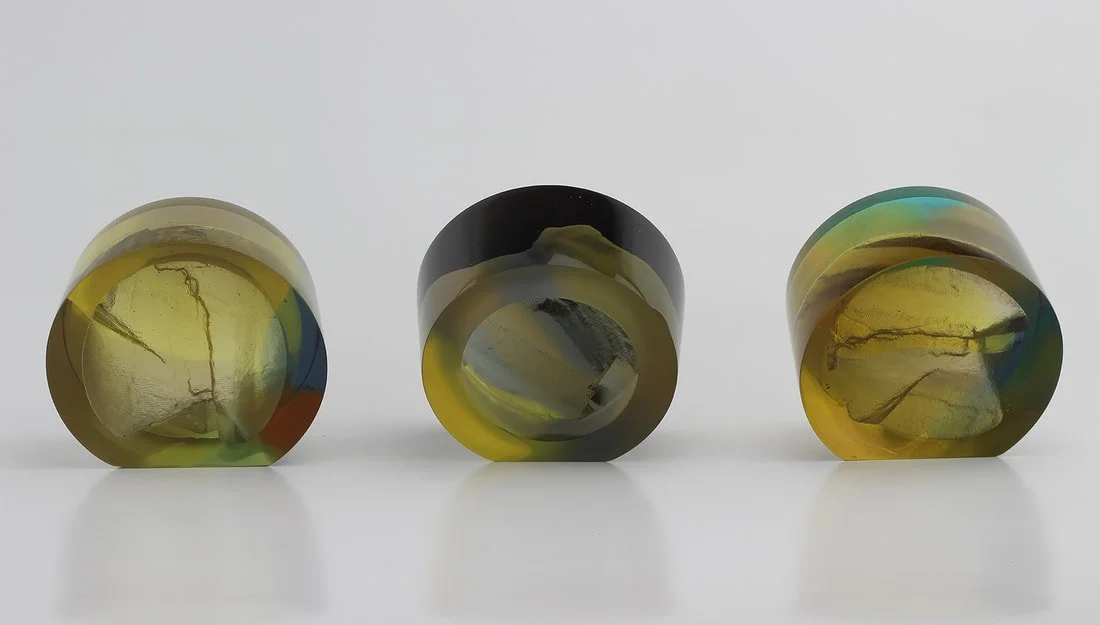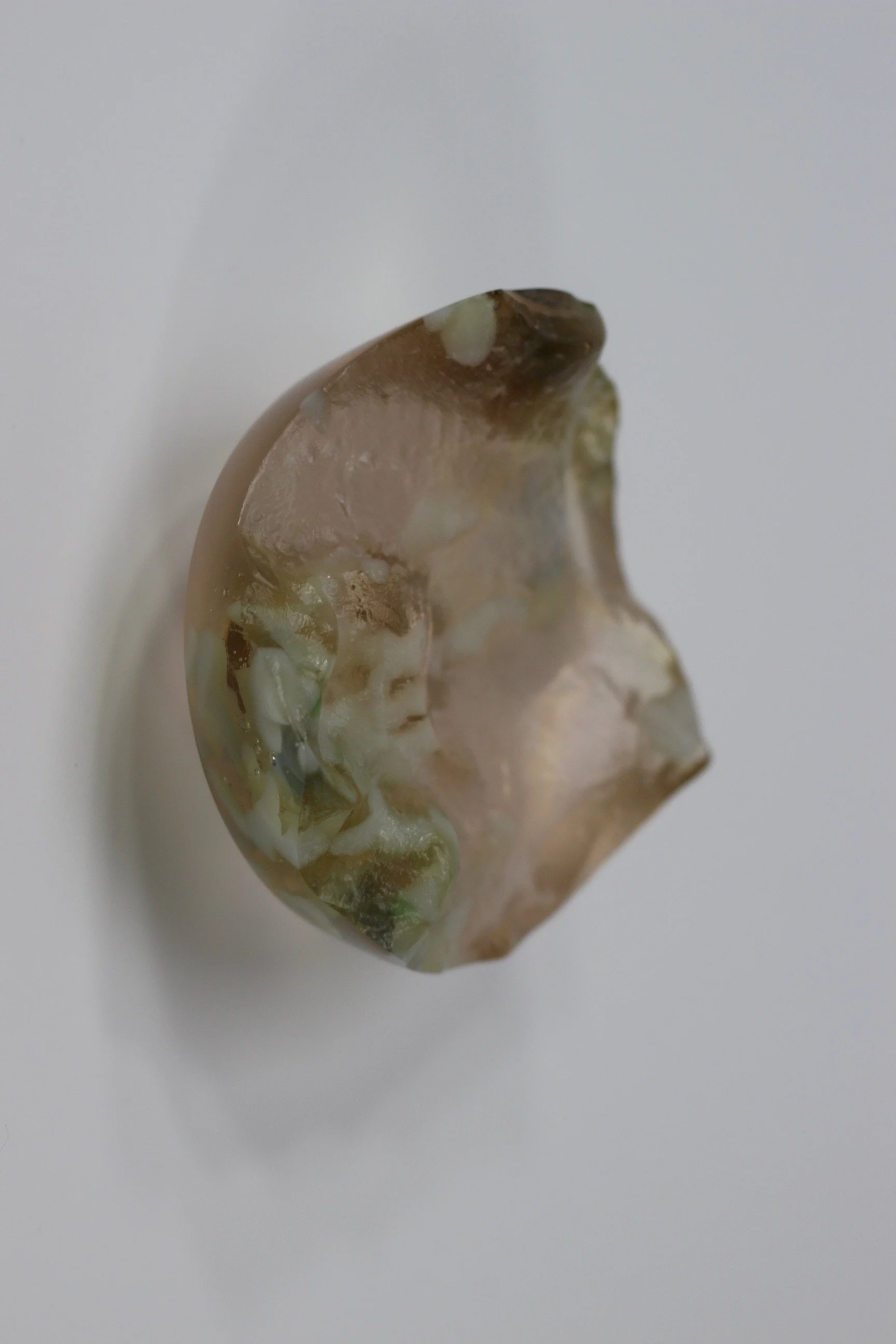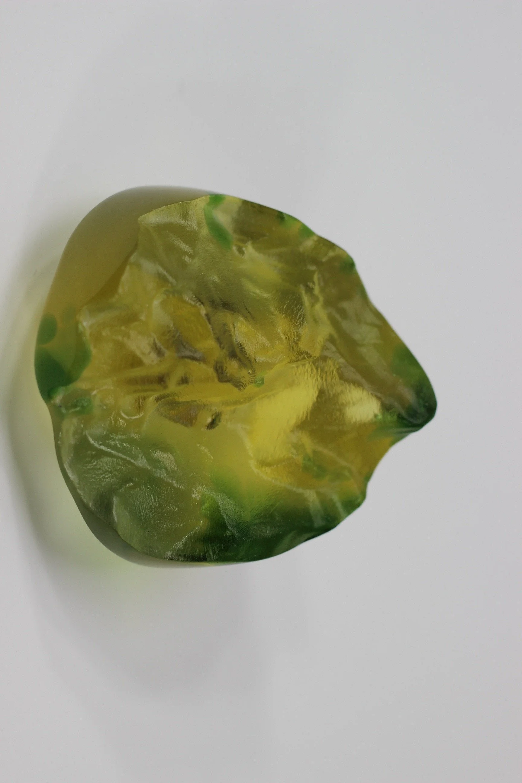 I collect information from locations I am situated in and then reinterpret it into glass so that viewer is able to hold and gaze into a captured geography, and are able to sense the importance of that place. I am not making paperweights per se, but their influence has determined a new scale and approach for my work.
