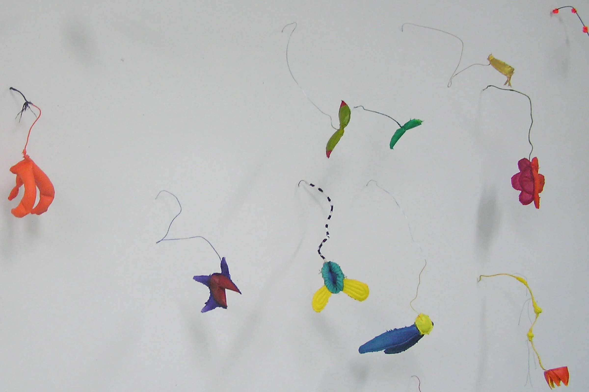 Materials: Fabric, acrylic paint, wire, found materials, shadows.